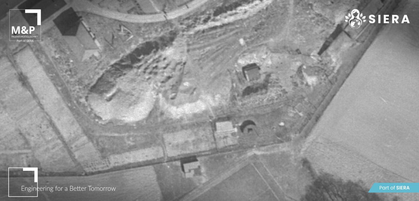 Durch die Auswertung historischer Luftbilder wurden Morphologieänderungen wie Geländesenken und Aufschüttungen von Produktionsabfällen identifiziert und mittels Kleinrammbohrungen überprüft.